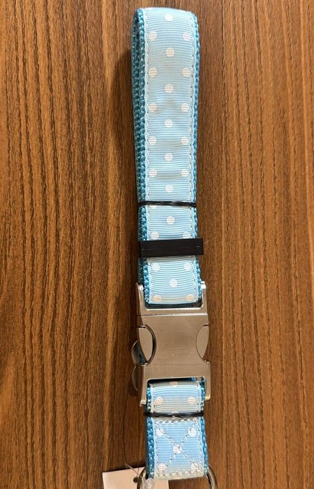 COLLIER BLEU PÂLE AVEC MOTIFS DE POIS BLANC  1 X 16-26 PO